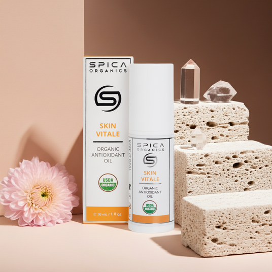 Discover two exceptional 100% USDA Certified Organic biomimetic elixirs, each independently formulated to profoundly hydrate, intensively condition, and luxuriously moisturize your skin. This thoughtfully curated collection features SKIN VITALE with rare Omega 7 from the Himalayan sea buckthorn and LUMIÈRE DE ROYALE with five rare superfruits from biodiverse ecosystems, two distinct formulas designed to work in perfect harmony with your skin's natural biology to provide comprehensive nourishment with botanicals with antioxidant properties and celebrate your skin's natural radiance. Each serum is formulated with pure organic botanicals and rare global superfruits, inviting a sense of luminosity and timeless elegance into your daily ritual while helping skin appear visibly younger, firmer, and luminously radiant with fine lines and wrinkles appearing softened and less visible, texture appearing more refined and polished, and complexion looking more even-toned and youthfully glowing.