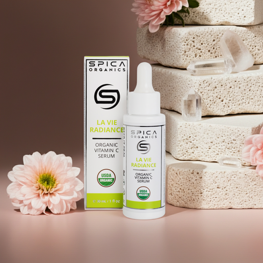 Our Radiant Renewal Ritual is built upon the very foundation of Spica Organics' core philosophy: transformative results achieved through synergistic pairing. This exclusive duo unites YOUTH DE VIVRE with astaxanthin, the king of antioxidants from pristine Hawaiian waters (ORAC 2,822,200), featuring amla, camu camu, and green tea and LA VIE RADIANCE with vitamin C-rich superfruits amla and camu camu, masterfully balanced to ensure that when used in rotation, each biomimetic formula visibly amplifies the benefits of the next. The astaxanthin with botanicals with antioxidant properties creates a nourishing foundation, while the vitamin C-rich superfruits deliver brightening radiance—helping skin appear visibly younger, firmer, and luminously radiant with fine lines and wrinkles appearing softened and less visible, texture appearing more refined and polished, and complexion looking brighter, more even-toned, and youthfully glowing. This offers definitive value and the ultimate experience in clean luxury and comprehensive skin vitality.