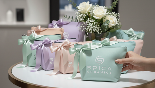 Signature branding - Subtle Spica Organics logo for refined elegance.
